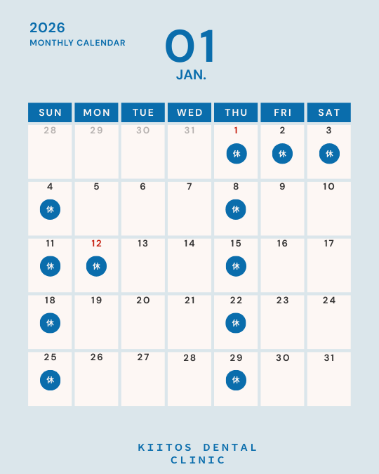 1月12日(月)は祝日のため休診となります。